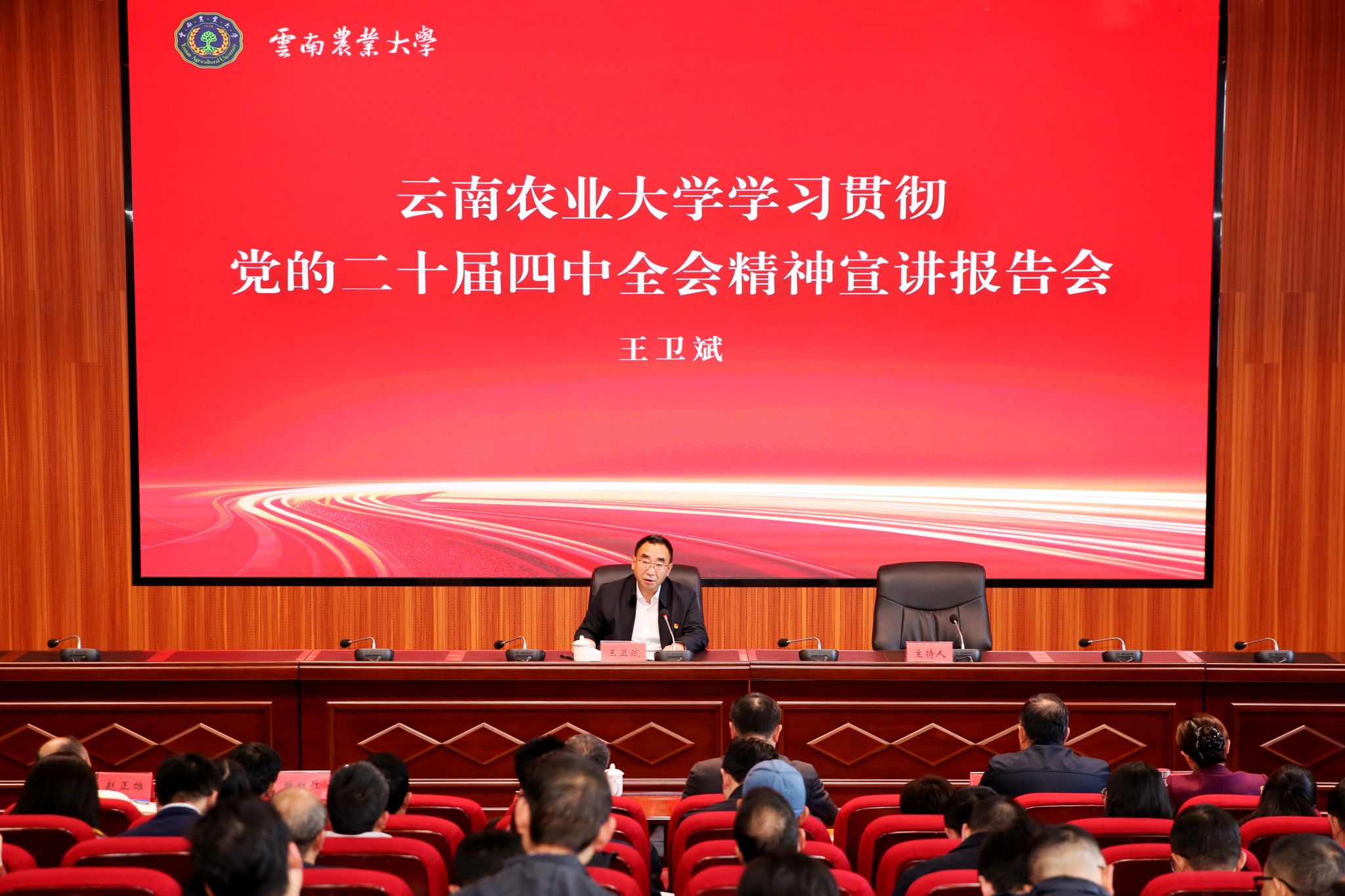 王卫斌指出,必须坚持和加强党中央集中统一领导,持续用党的创新理论统一思想、统一意志、统一行动,坚持正确用人导向、锲而不舍落实中央八项规定精神,推进作风建设常态化长效化,营造风清气正的政治生态,引领学校各级党组织和广大党员干部更加紧密地团结在以习近平同志为核心的党中央周围,凝心聚力、勠力进取,为中国式现代化建设贡献云农智慧和力量。